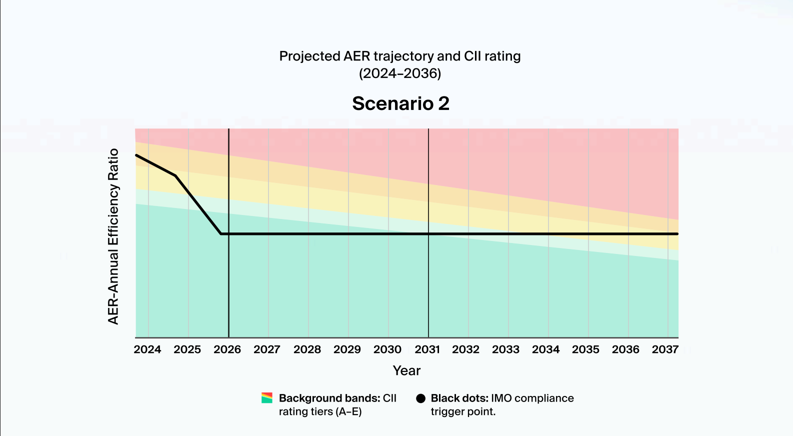 This case demonstrates that compliance with tightening CII requirements can be achieved through a structured, scenario-based approach. By combining operational measures with targeted retrofits, shipowners can close efficiency gaps while maintaining commercial viability.
